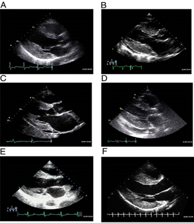 (A) Hypertrophic non-obstructive cardiomyopathy; (B) Hypertensive heart disease with secondary renal failure; (C) Cardiac amyloid; (D) Mucopolysaccharidosis; (E) Cardiac oxalosis; (F) Friedreich ataxia. Adopted From: Seward and Casaclang-Verzosa, (2010), p.1774, [2]