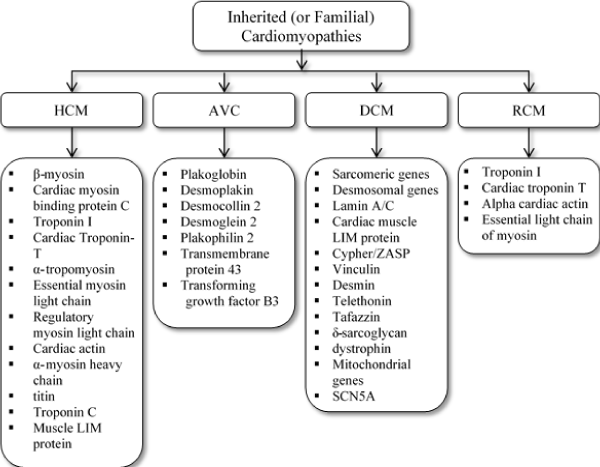 Figure 2. Classification of cardiomyopathies and the associated major genetic mutations