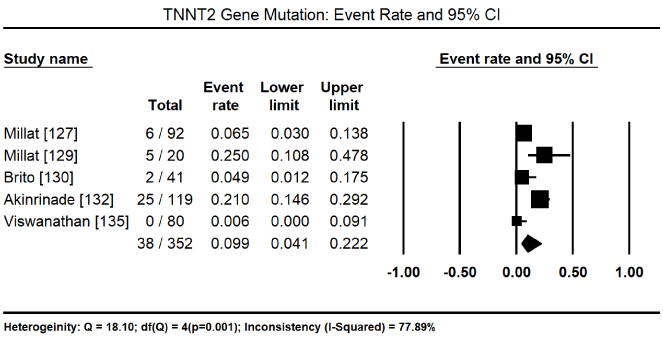 Variants in sarcomeric gene mutations occur in up to 60-70% of genotyped HCM patients and 60% of sporadic HCM [36,42]. Genotype-phenotype of HCM patients. However, genotype-phenotype correlations for HCM remains incompletely defined partly because of unique variants of the mutations. Findings that a specific mutation in the sarcomeric proteins leads to a specific phenotype are inconclusive because of heterogeneous variability in the pattern and extent of LVH, and outcomes in HCM patients including first-degree relatives [43]. The heterogeneity has complicated correlations between genotype, and phenotype or outcomes in HCM patients. A recent systematic review and meta-analysis including 2,459 patients from 53 families with gene mutation in the sarcomere, reported sarcomeric mutation with younger age of presentation (< 45 years), family history of HCM, family history of SCD and greater LV wall thickness (≥20 mm) as positive predictors of mutation, whereas hypertension as a negative predictor [44-47].