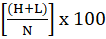 Item analysis was carried out using discrimination and difficulty indices and distractor efficiency calculations. The discrimination index, difficulty index and distractor efficiency were carried out according to the method previously described by Hingorjo and Jaleel [12], Gajjar, et al. [5] and Rao, et al. [4]. For the discrimination index and difficulty index the students’ scores are arranged in the order of merit and divided into 3 groups of 27% (upper one-third students, H), 46% (middle group) and 27% (lower one-third students, L). The upper and lower one-third students with 11 students each were used to calculate the discrimination and difficulty indices.