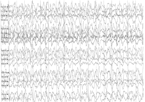Figure 3. Sleep-deprived EEG demonstrating interictal sharp waves in the right frontotemporal region at F8.