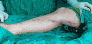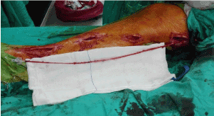 Figure 2: Showing a long saphenous vein harvested by lens assisted bridging technique with good cosmetic results.