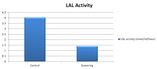 The mean LAL-A in the screening group was 1.43 ± 2.05(0.03-16.8) nmol/ml/h; significantly lower comparing to the healthy controls (p < 0.001). No LAL deficiency (LAL<0.03 nmol/ml/h) was detected (Figure 1).