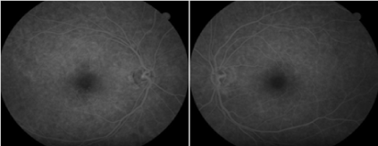 Figure 2. Fluorescein angiography does not reveal a transmission defect or other abnormality.
