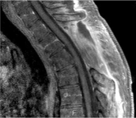 Figure 1. In MRI; The lesion was in upper mediastinum, in left paravertebral area, extending to the spinal canal by expanding neural foramen.