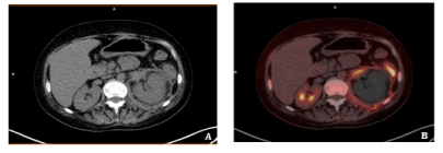 In conclusion, 18F-FDG PET-CT can differentiate between areas of metabolic active disease versus necrotic tissue and provides whole body images, so it can be very useful to confirm complete response to antifungal therapy. However, this case was particularly special because of the multi-organ involvement and the final diagnosis by perirenal fat biopsy, that was guided by 18F-FDG PET-CT. It allowed us to avoid necrotic tissue and therefore an inconclusive histological study, which would have meant a delay in initiation of treatment. We think it highlights the utility of this technique not only in diagnosis and therapy monitoring, but as a guide of biopsy studies [14].