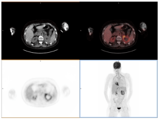 After 12 months of follow up, she remains stable in last 18F-FDG PET-CT study, with a mild clinical improvement (Figure 5).