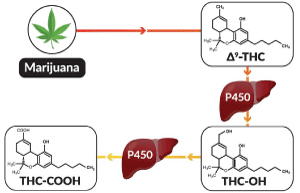 Figure 1. A schematic representation of THC found in marijuana and how THC is metabolized in humans.