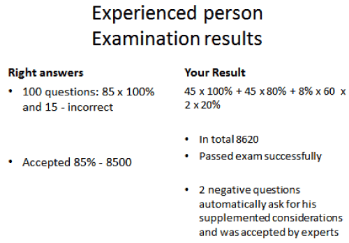 The existing system for assessing knowledge in postgraduate medical education as well as CME is not perfect. It does not take into account the doctor’s physical capabilities (age, sex, professional experience, etc.) and psycho-emotional characteristics. So, assessments may not fully evaluate the doctor’s knowledge and his/her professional skills.