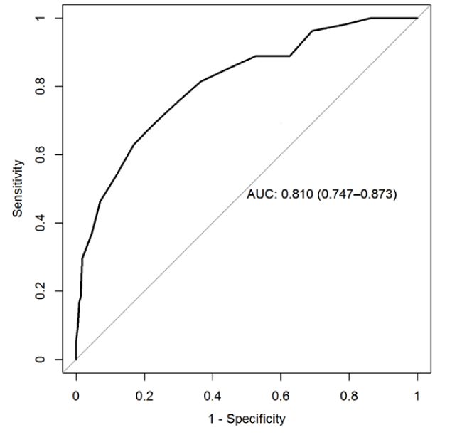 The agreement of classification of dysglycemia defined by HbA1c and capillary blood glucose (CBG) were compared using weighted Cohen's Kappa index. A weighted index of 0.24 (95% CI: [0.1; 0.37]) could be interpreted as very weak agreement. For each univariable model, their estimated area under the curve (AUC), can be found in Figures 1, 2, 3 below. Glucose, with weighted Cohen's Kappa index of 0.24 (very weak agreement).