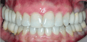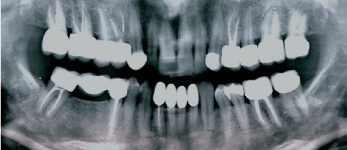 Throughout the first 5 years of her treatment, the patient had episodes of exacerbation and remission of her pain. She described her pain as “shooting and throbbing” for the maxillary teeth, and “burning sensation” for the mandibular right teeth. Another finding was the constant change in her occlusal contacts, even in the course of a day. Frequently, the shift in the occlusal contacts would result in the mesiodistal movement of some of the abutment teeth and open the proximal contacts which were otherwise meticulously adjusted and delivered. Similar sequence of events have been reported by Okeson [17] and the inflammation of the capsular ligaments (capsulitis) was quoted as a possible cause. The fact that the phenomenon of changing occlusal contacts was not repeated with implant supported prostheses could be due to the relative immobility of these prostheses in the bone, as compared with the tooth-supported restorations. It may also demonstrate the favorable response of her neuromuscular system and, as a result, the reduction of her TMJ inflammation in response to the adjunctive therapies.