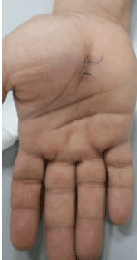 Wound is closed with 2 simple stitches and 4 cc of Marcaine is injected in subcutaneous area and the carpal tunnel. Elastic bandage is applied for 6 hours and removed and band aid is placed and all patients were discharged home the night of surgery following same principles from Duncan and flowers Discharge Criteria: Independent in all self-care and dressing activities, 0-2 Weeks: Edema control PRN, Active/passive ROM of digits, Scar massage, Patient able to use hand for bathing once sutures are removed [8].