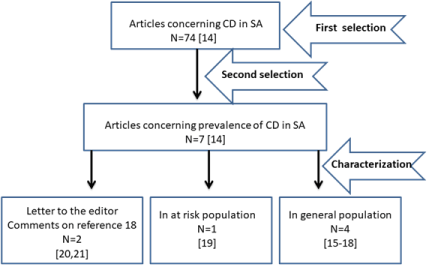 So far, only seven articles concerning the CD prevalence in SA were retrieved by a comprehensive database and journal search [14]. Here, we present description and Meta-analysis for the literatures concerning the prevalence of celiac disease in Saudi Arabia.