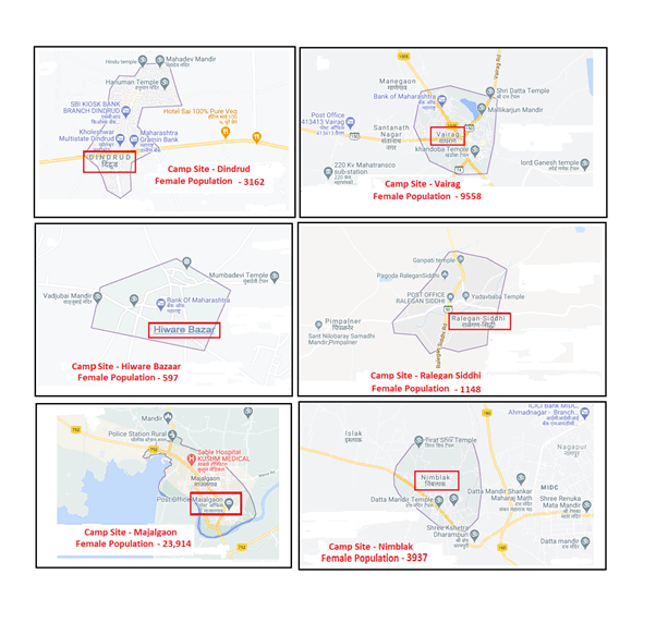 Legend to Figure 1: Representative Vaccination Camp locations in Maharashtra, highlighting the female population of the village.