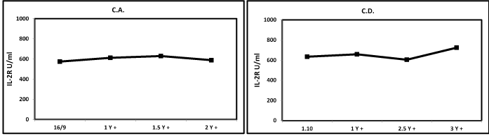Figure 7. Kinetics of sIL-2R in a stable disease HNC patient.This is important information for the clinicians provided by tumor markers, without using CT or MRI.