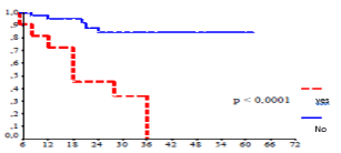 The recurrence was analyzed from the group of patients undergoing curative surgery and not died postoperatively. survival without recurrence was considered and the event that modifies the curve was recurrence.