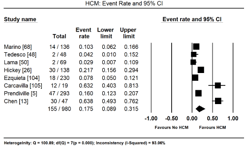 Meta-analysis of cardiac features and management