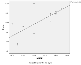 Figure 3. A positive correlation was found between the ReHo of the left superior frontal gyrus and MMSE scores.