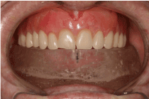 In the end, the patient received a new pair of conventional complete dentures, which was supported by the bone, with the correct DVO. She reported high level of satisfaction with the results, no more pain, speaking and eating better, which even had an effect on her previous psychiatric diagnosis (Figures 1-8).