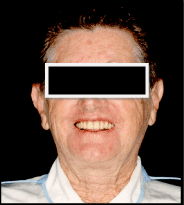 An elderly woman, 70 years old, Caucasian, reported the following medical history: skin cancer on remission and bipolar disorder, taking anti-depressants and anxiolytics on a daily basis. The patient had already started the process of receiving dental treatment. According to the initial plan, her oral rehabilitation was going to be provided with fixed implants. In order to do so, the professionals did a lower bone graft, but were not successful enough for the execution of the plan. After that, the specialists decided to make a pair of removable complete dentures to be positioned behind the bone. Neither such positioning, the occlusion nor the decreased vertical dimension were adequate, which caused her a lot of pain and difficulty to speak and chew.