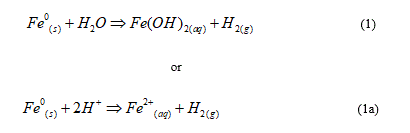 Equation 1 shows that Fe0 is a source of FeII and H species. Thus, Fe0 can be universally applied to generate FeII and H species (reducing agents) for any relevant application, including the generation of FeIII and FeIV species [31,34,45,56,116]. Eq. 1 recalls that Fe0 is oxidized by water (H2O) while Eq. 1a recalls that iron corrosion, and the corresponding H2 generation, is more quantitative under acidic conditions (abundance of H+). Another explanation of Eq. 1a is that the consumption of H+ yields to an increase of the pH value.