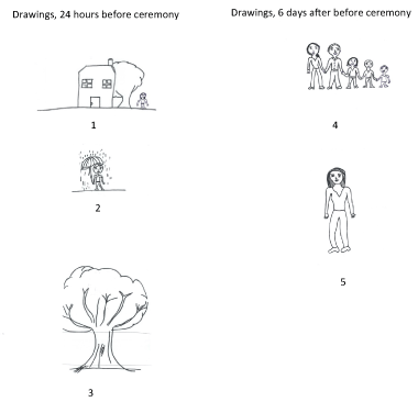 Psychometric test findings. There was a significant change in the projective tests after the initiation, which mark the personality of the candidate, this change is not a result of work in therapy, nor of any pharmacological treatment, since the time between one session and another was 8 days. The most significant change observed is the human figure of the candidate after initiation compared to the figure of the person in the rain before the initiation.