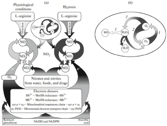 Figure 3. Cycles of nitric oxide (a) and the superoxide anion radical (b)