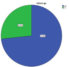 | Inform patient’s GP | 44/60 (73%) | 7/13 (54%) | 37/47 (79%) | 0.09 |