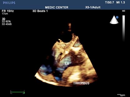 Figure 8. 3DTEE with icrop function shows thrombus attached to LA wall