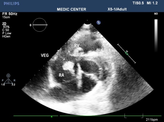 Endocarditis, infection of the endocardium and heart valves, the diagnosis and therapeutic of this condition has improved by echocardiography, especially TEE. Echocardiography not only provides evidence of endocardial infection as vegetation, but also offers important hemodynamic information like regurgitation severity and other structural complications.