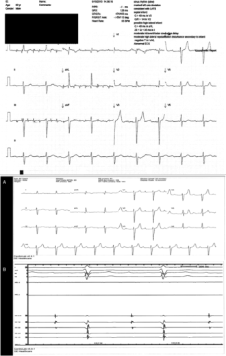 ECG recognition of the P’ wave during tachycardia is very useful in the diagnosis of supraventricular tachycardias. In atrioventricular nodal reentrant tachycardia (AVNRT), no discrete P’waves are observed on ECG and pseudo r’ deflection in lead V1 (pseudo r’) is commonly seen (90%). It is an upward deflection in the terminal portion of the QRS complex during tachycardia and not seen during sinus rhythm. Pseudo r’ deflection in lead V1 is a highly sensitive indicator of AVNRT and appears to result from the activation of the superolateral aspect of the right atrium [13].