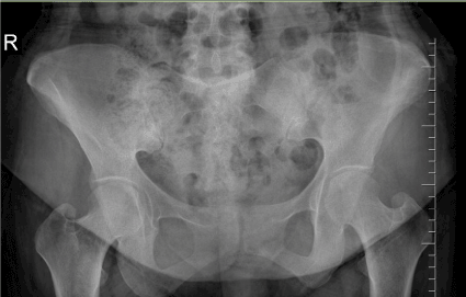 Figure 2. Sacroiliac joint radiography of the patient demonstrating bilateral sacroiliitis