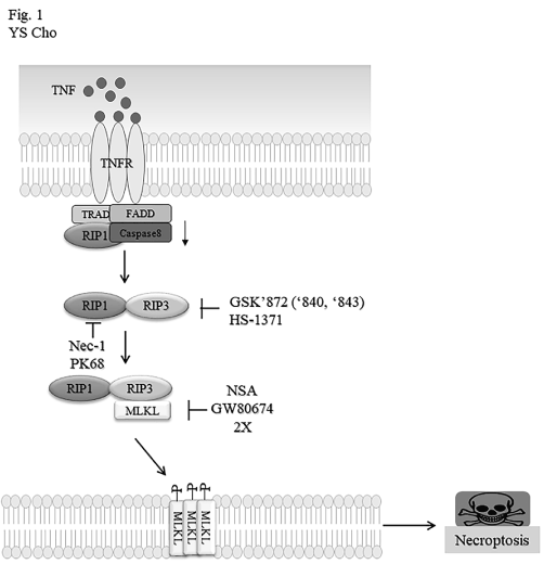 Signaling pathway for necroptosis and chemical inhibition of necroptosis-related proteins (Figure 1)