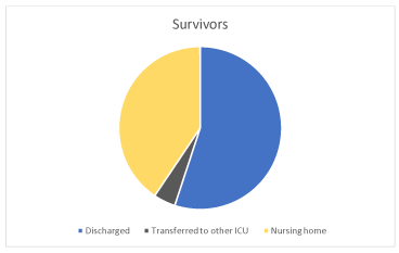 Figure 12. Discharged (38%), transferred to other ICU (3%), to nursing home survivors (28%)