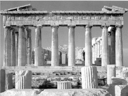 Figure 2: The rhythm of a colonnade and its unobtrusive variation (The Parthenon on the Akropolis, Athens).