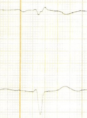 Figure 2. Typical example of shallow S wave in lead V1 and deep S wave in lead V2