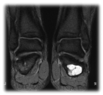 Figure 2B. STIR in which the hyperintensity of the lesion in the calcaneus is appreciated