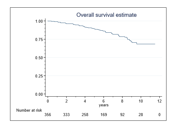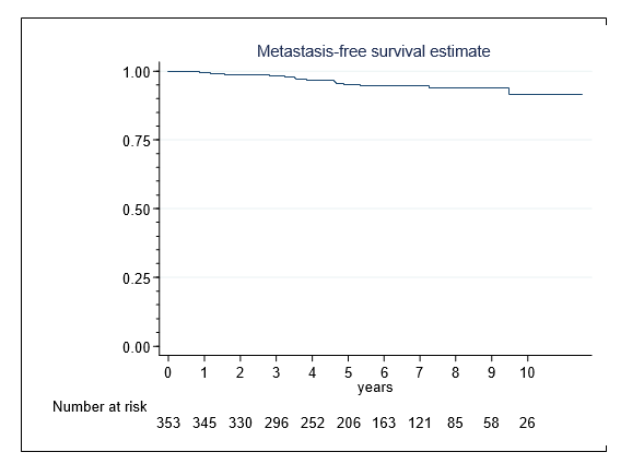 Figure 4. Metastasis-free survival in 353 patients following single-session HIFU treatment of localized prostate cancer