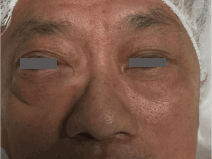 Postoperatively the patient’s hyperglobus improved (Figure 7), but he developed a right ectropion which was surgically corrected at a later date. Flexible nasendoscopy was done for the patient 16 months post-op and no recurrence of the mass in the right nasal cavity was noted (Figure 8). The patient was last reviewed 16 months postoperatively, and no recurrence was noted.