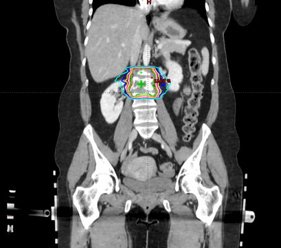 Figure 3. Planning target volume (PTV) and organs at risk (OAR) shown in a CT coronal plane