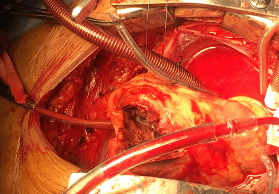 Figure 5. Linear closure oh left ventricular incision by two Teflon strips
