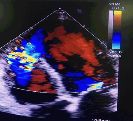 Figure 1. Pre-operative echocardiogram shows a ventricular septal rupture