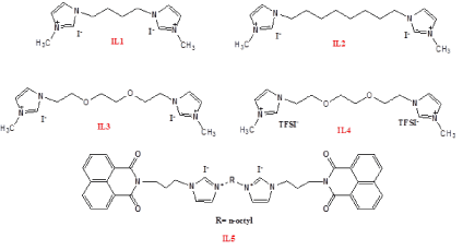 N-(3-propylimidazole)-1,8-naphthalene monoimide (1) was synthesized according to the previously reported method (Figure 1) [1]. IL1, IL2, IL3 and IL4 were prepared according to the literature [2-3]. The synthetic details of IL5 synthesis are given below (Figure 2).