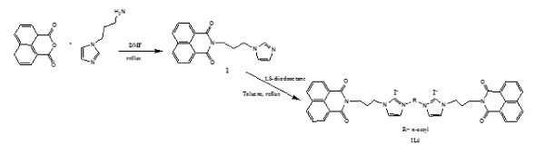 Synthesis of 1,8-naphthalene monoimidedimer bearing imidazolium iodide salt (IL5)