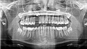 Figure 8. A panoramic radiograph 3 months past traction #13