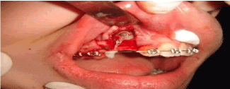 Figure 4. Intra oral photos of the stage of creating space for the impacted #13