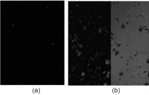 Figure 9. (a) Confocal Laser Scanning Microscope image(CLSM) of S. typhi antibody conjugated QDs (b) CLSM image (right) and DIC image(left) of conjugated QDs.