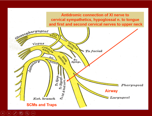 Transcutaneous electrostimulation (TENS) of the Vth,VIIth and XI cranial nerves produces relaxation of the masticatory, facial and neck muscles by antidromic relaxation and hyperpolarisation of the alpha gamma motorneurone of the jaw elevator and depressor muscles of the head, jaw and neck via the mesencephalic proprioceptor nucleus of the trigeminal nerve .This results in concentricity and alignment of the atlanto occipital A/O,atlanto axial A/A and C3/C4 vertebrae in part previously described by Thomas 1990,Raman 2010 and Fujii and Mitani 1973 [1-3].