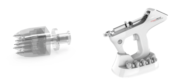 Figure 1. The microneedle device (Crystal MESO™; Nobamedi Co., Ltd., Yongin, Korea) consists of five multi-pins, which are injected at a 1.2-mm depth in 32 G