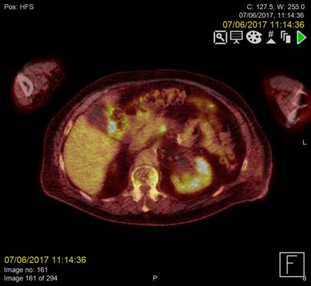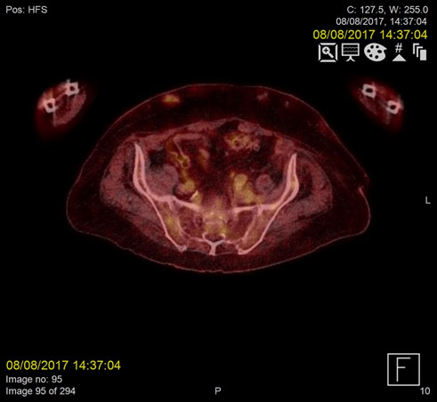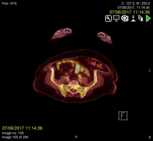 Fluorine-18 fluorodeoxyglucose positron emission tomography (F18-FDG PET) combined with CT (PET/CT) was requested with the intention to rule out malignancy.